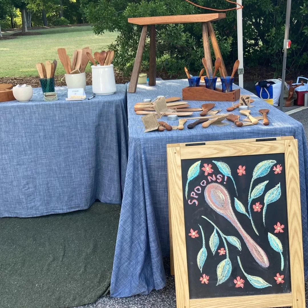 Whether for art or for furniture, I work almost exclusively with hand tools and rely on native woods and natural finishes. My furniture and woodenware are made to be used, to be comfortable, and to last. But I aim for flowing lines in something as simple as a spatula, and even a footstool is a kind of sculpture! Much of my work these days is chip carving, relief carving done with a knife. It's a form traditionally limited to regulated geometric designs, but I'm interested in testing the limits of what that simple knife can do, incorporating motifs from folk art and the life of the North Carolina Piedmont.