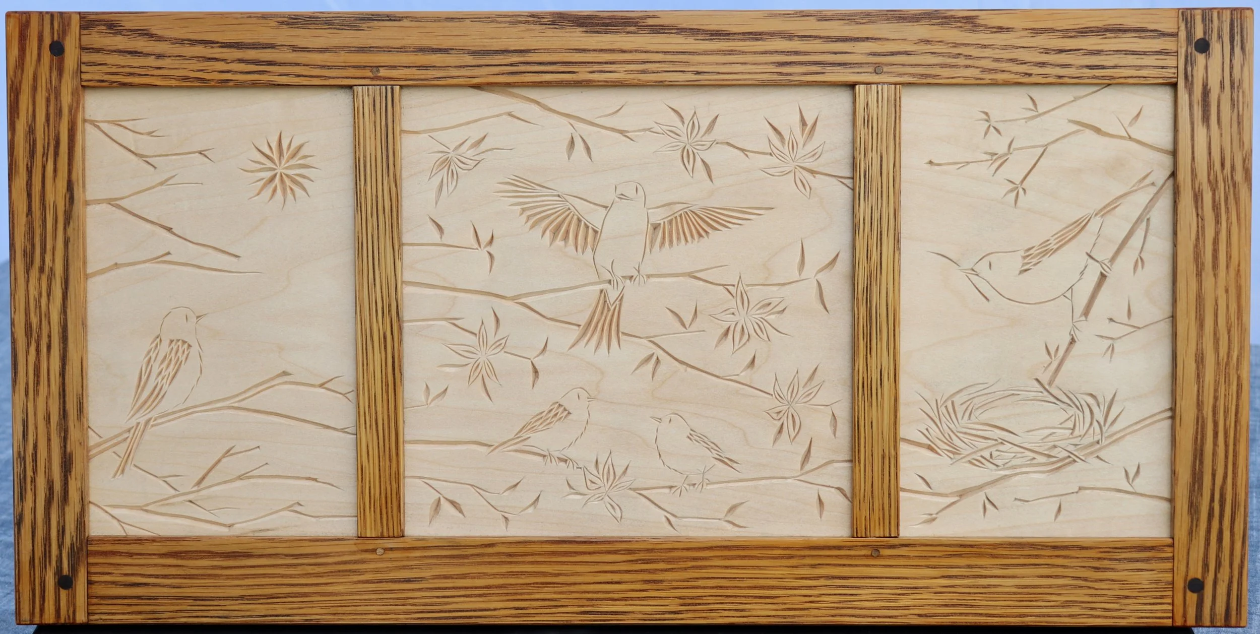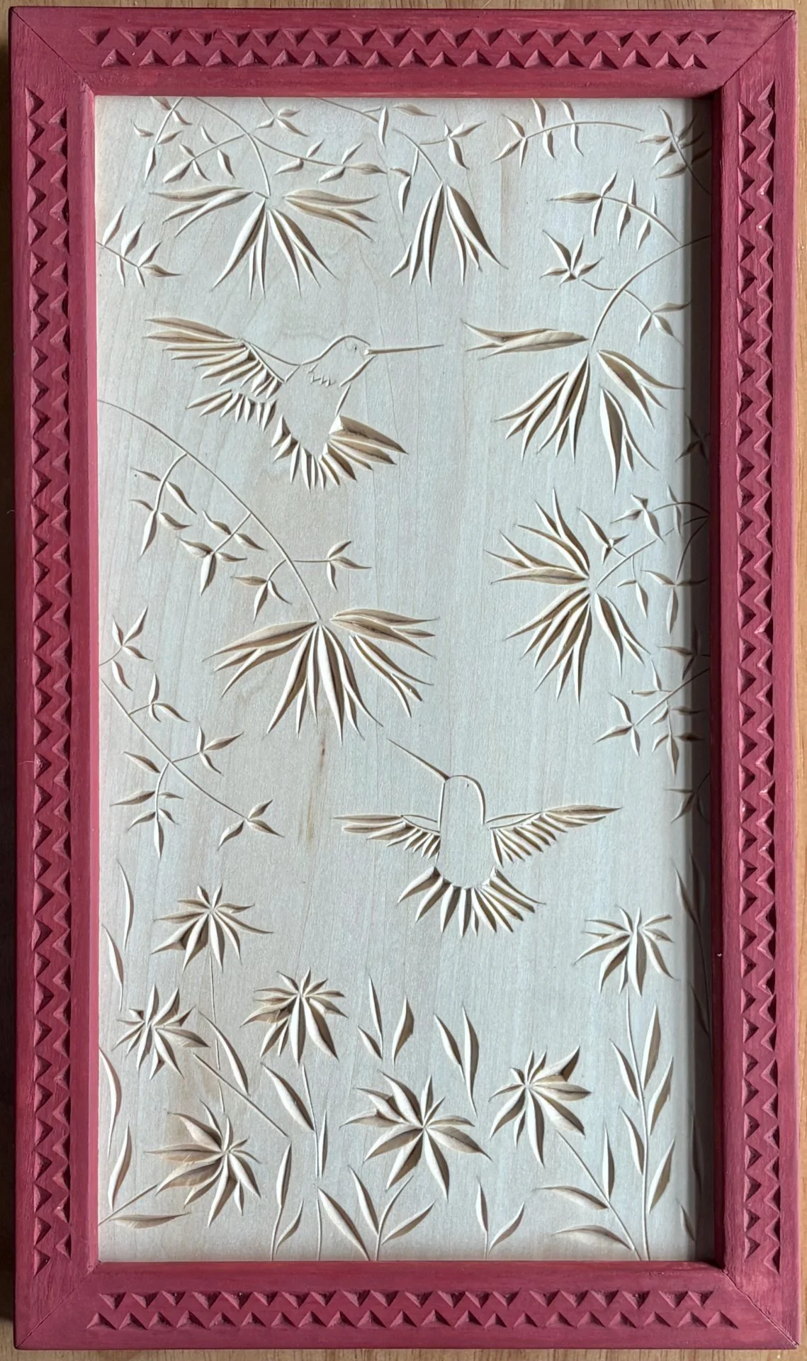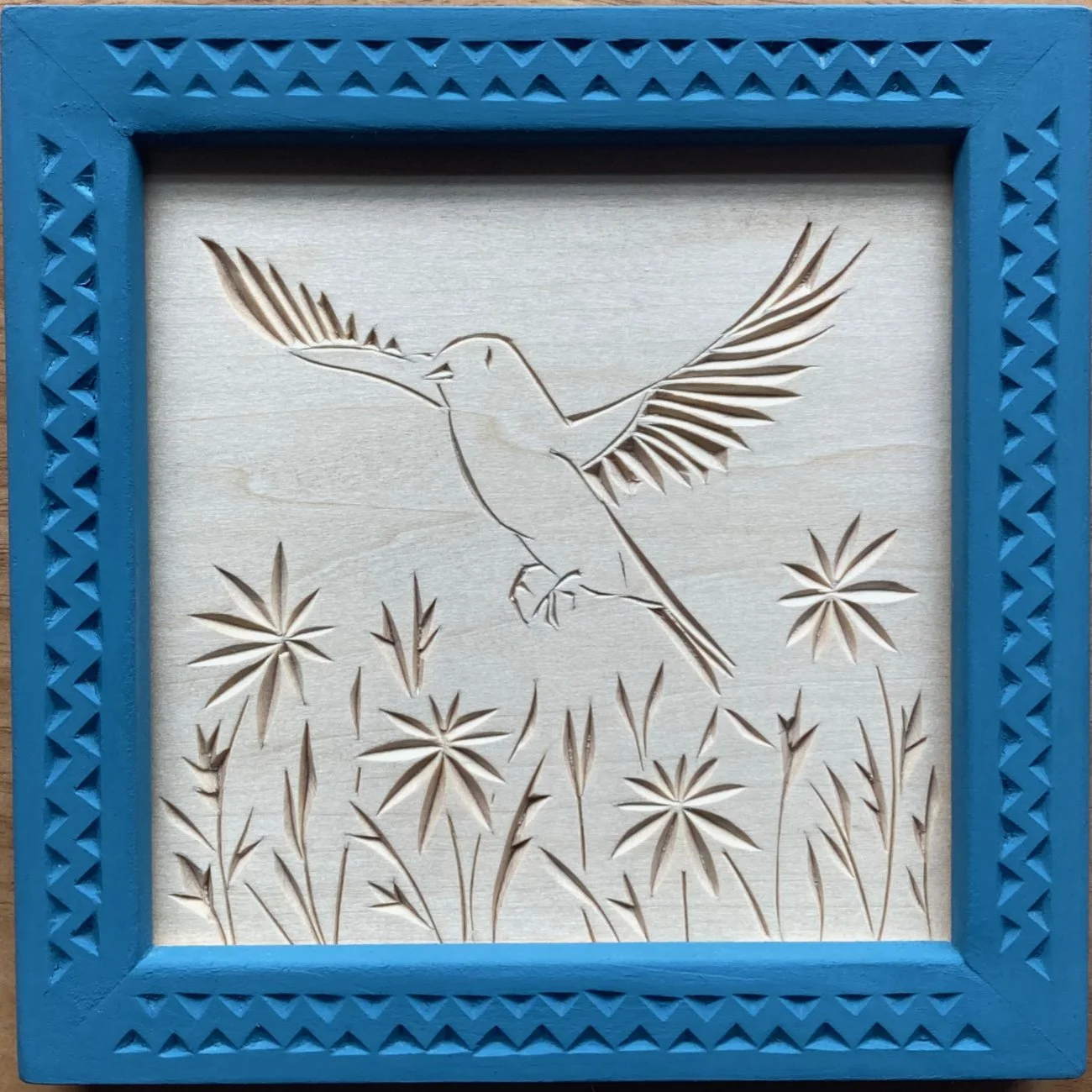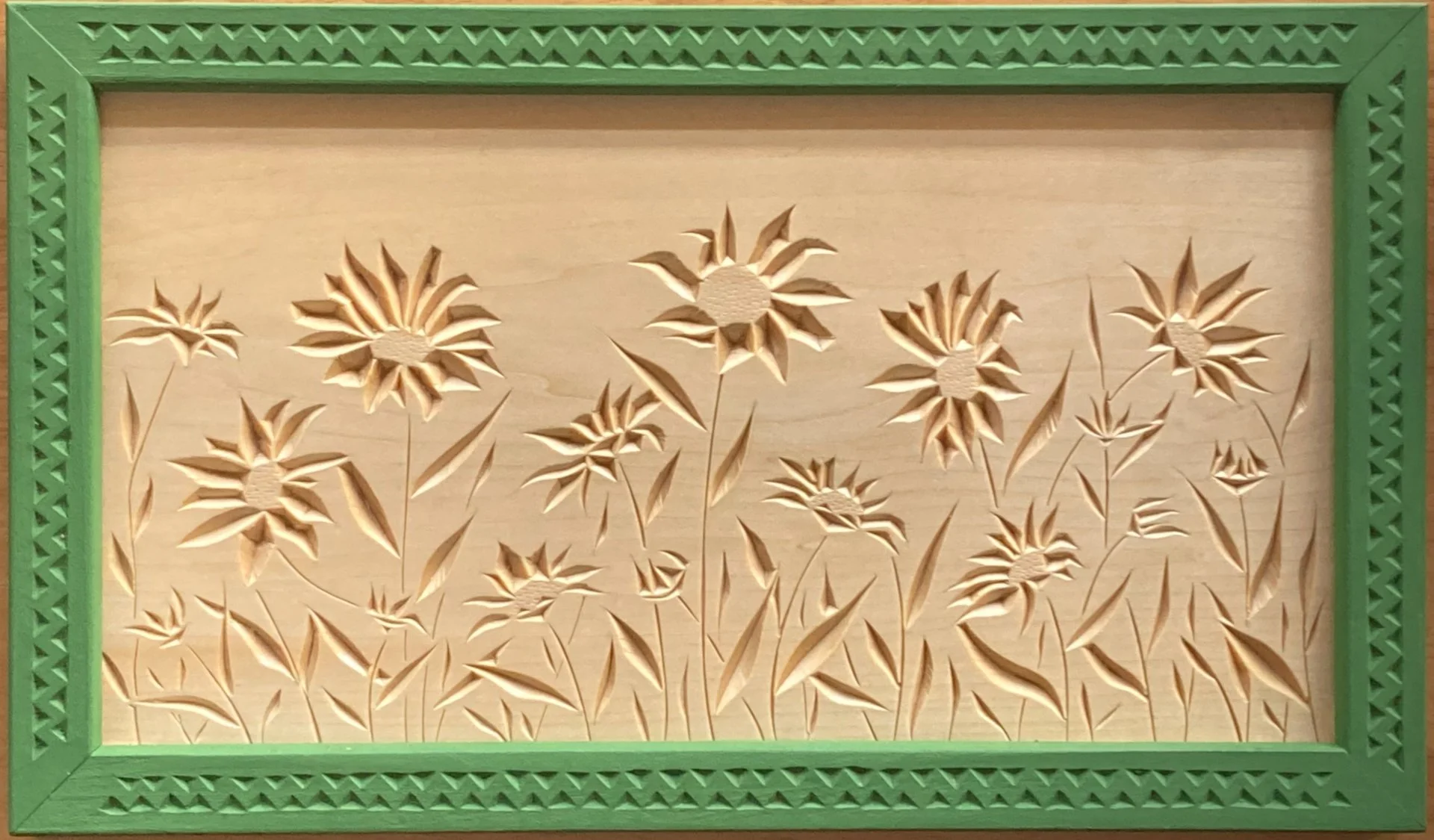 The work below is a sample of what I’ve completed in 2024 and ‘25. All carvings are executed in basswood with chip-carving knives and finished with shellac. Frames for single carvings are similarly chip-carved, then finished with milk paint and oil and/or beeswax. Frames for polyptychs are hand-made with traditional mortise-and-tenon joinery and variously finished.